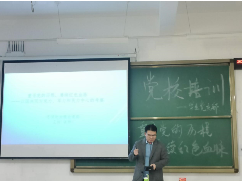 11月29日中午12:10-1:30在5-115教室,政法公司思政课部的王俊老师为我们讲授了以“重寻党的历程,赓续红色血脉”为主题的党课。王俊老师在课上回顾了党的艰辛历程,鞭策了我们努力学习奋斗,增强了我们的爱国热情和振兴祖国的责任感和使命感。