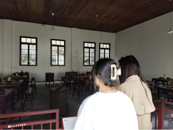 武昌农民运动讲习所旧址纪念馆是在第一次国共合作时期的大革命高潮中,由毛泽东同志倡议创办并主持的一所培养全国农民运动干部的公司。沿着历史足迹,走进革命先烈。同学们依次参观了教务处、大教室、寝室、膳堂等陈列室。