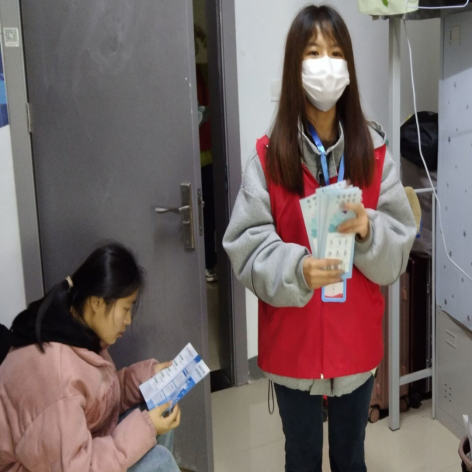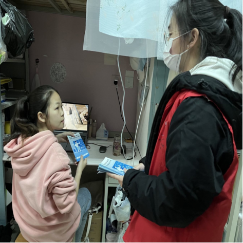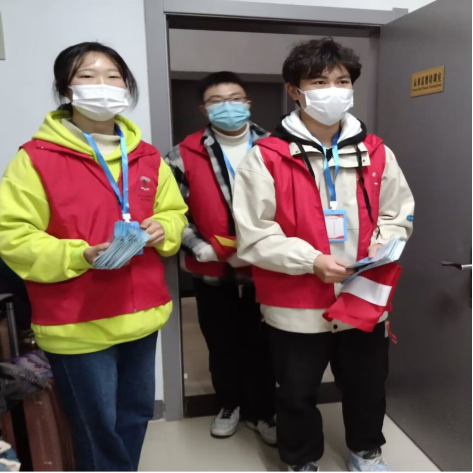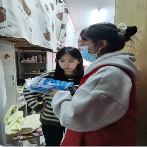 在陈龙老师和高凯老师的带领下,党务小组成员穿梭在9栋、12栋、13栋、14栋、15栋、21栋各个楼层之间,一间寝室一间寝室逐一宣传。虽然天气很冷,有些许阴沉,空中水汽弥漫,路面上积水很多,但依然阻挡不住党务小组去为大家服务的积极性和热情。在活动开始之前,党务小组就已经做好了充足的准备。制作了预防甲流宣传单,上面印有详细的甲流科普知识和预防措施。