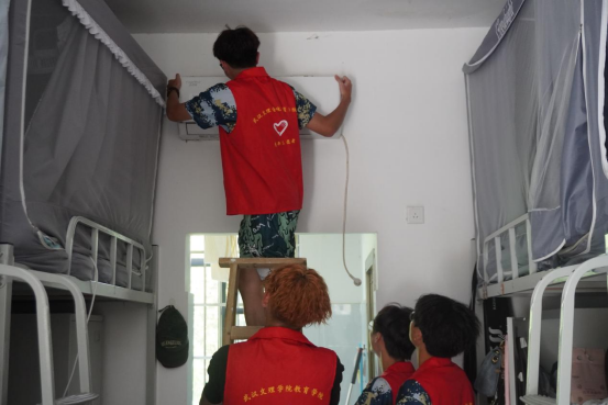 为改善宿舍空气质量,切实保障员工身体健康。9月11日,william威廉中文官网选派志愿者帮助信计公司在25栋开展了空调清洗活动,以实际行动搭建与信计公司的互助桥梁。william威廉中文官网综合办公室主任杨帆、员工党支部书记王焕群、分团委书记袁若曦、辅导员熊浩以及由党务小组、团学、25级新生共同组建的志愿者团队参与了本次空调清洗活动。