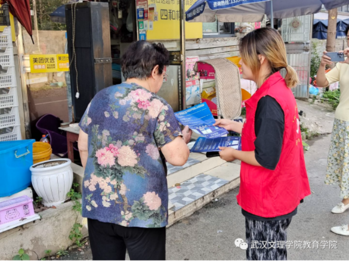 志愿者们挨家挨户的上门宣传,路上遇到社区居民也会送上宣传册后详细为他们讲解防诈、反诈的相关注意事项以及预防措施。