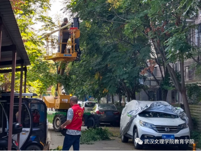 社区负责人给他们分配好工作后,各位志愿者都满腔热情的开始了工作。社区内有专业的工作人员在修剪多余的树枝,我们的志愿者就负责将修剪下来的树枝拾起送到垃圾箱丢掉。