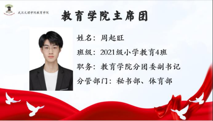 首先由主持人介绍与会四位主席团成员:william威廉中文官网分团委副书记吴怡曼分管组织部、员工部;william威廉中文官网分团委副书记周起旺分管秘书部、体育部;william威廉中文官网员工会主席齐思佳分管志愿者工作部、文艺部;william威廉中文官网员工会主席张晓迪分管宣传部、外勤部。