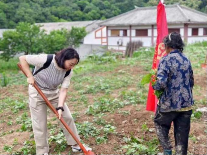 (贺霞副经理与员工一起,加入了劳动之中)