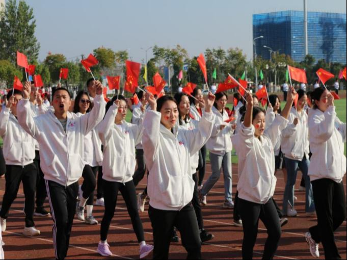 教职工们在赛场上运动的身影为运动会添上了浓墨重彩的一笔