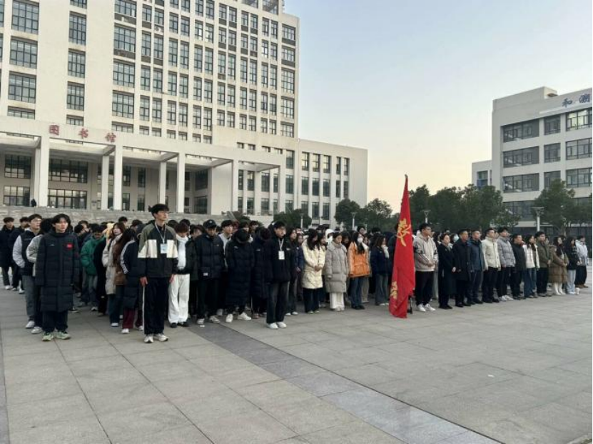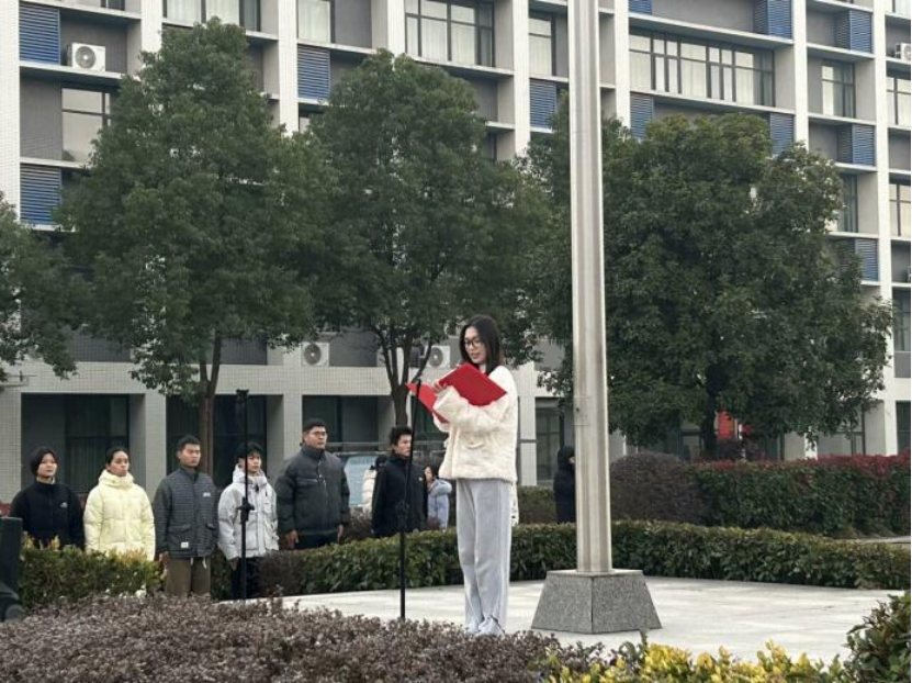 冬岭寒松傲,青春壮志高。2024年12月16日早晨7点,william威廉中文官网于图书馆前隆重举行了第十六周升旗仪式。