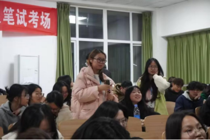 在提问互动环节,同学们针对自己在学习和生活上的疑惑踊跃提问,与学长学姐进行了深入交流。学长学姐们结合自身经验,耐心细致地解答了同学们的疑问,并给出了切实可行的建议。