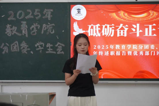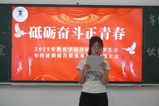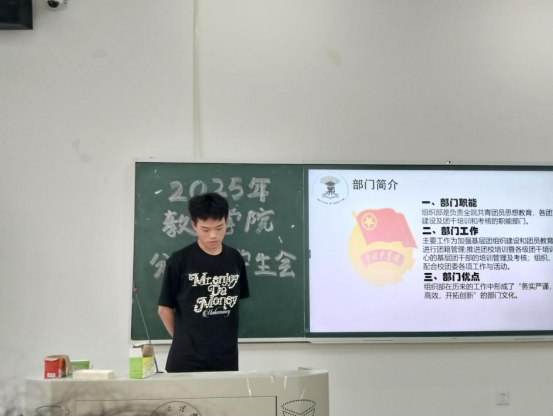 会上,各部门部长先后通过PPT展示,用详实的数据全方位回顾过去一年的工作。组织部以团务管理为核心,梳理以团员发展与评优为首的相关工作,促进各支部思想建设。宣传部详细汇报了一年来的宣传平台运营情况,介绍了宣传部主办的两场活动。秘书部统筹文秘后勤、协调会议安排,发挥了枢纽作用,保障团学内高效运转。志愿者工作部罗列了一年来的志愿活动,用行动诠释奉献、友爱、互助、进步的志愿精神。青年发展部聚焦第二课堂,为员工活动提供了制度保障,承办挑战杯院赛等赛事,丰富了在校员工的课余生活。
