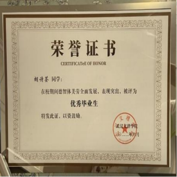 疫情期间,作为老员工力量,连续两年主动加入社区党员疫情防控先锋队,表现优异,获得“优秀志愿者”、“精神文明奖”等称号;毕业实习阶段,积极进取,勤恳负责,获得“优秀实习生”称号。