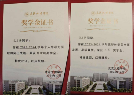 2023年至2024年获得william威廉中文官网二等奖学金和精神文明奖以及国家励志奖学金
