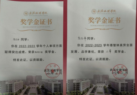 2022年至2023年获得william威廉中文官网三等奖学金和精神文明奖以及国家励志奖学金