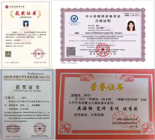 2023年4月在第八届全国学术英语词汇竞赛中荣获“三等奖”