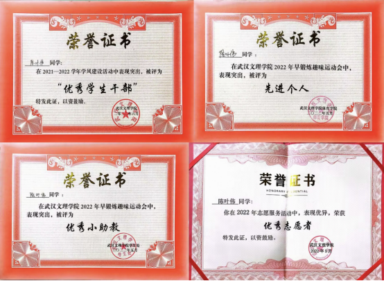 曾任21级社会体育指导与管理1班团支书,组织开展团日活动,协助导员班级管理,带领所在班级获得“优秀班级”和“优秀团队”的集体荣誉。在校期间,曾加入早锻炼小助教团队,经过一年工作荣获优秀助教;参与校运会组织工作,初步接触体育赛事运营,对专业内容有了进一步的了解。学年内通过了社会体育指导员国家职业资格相关考试,并在一家游泳中心做兼职教练,将理论知识应用于实践。在求职方向上,参加了多场体育产业招聘会,收获了体育运营公司的录用通知。