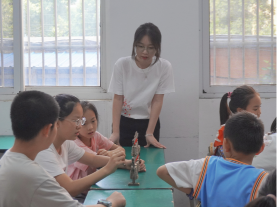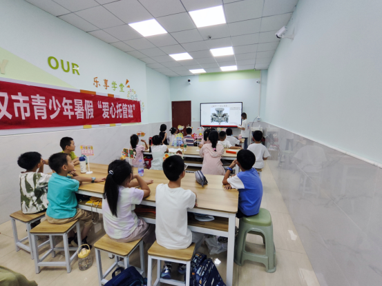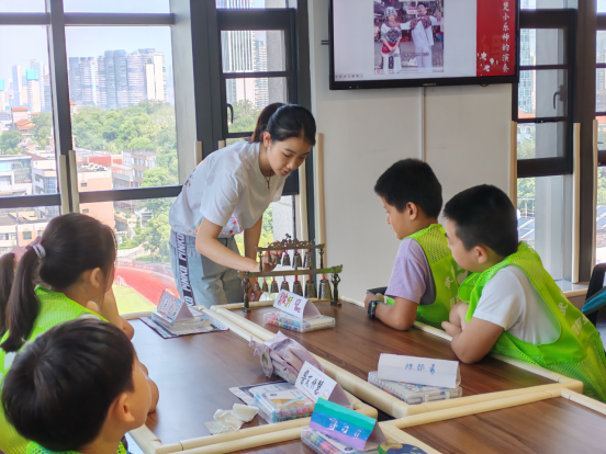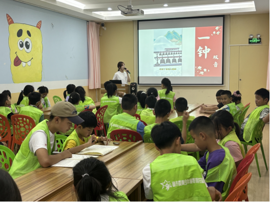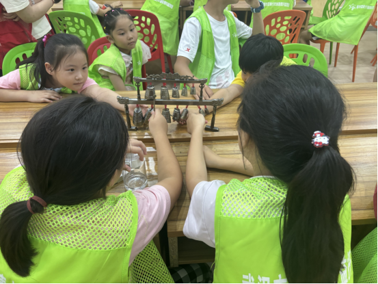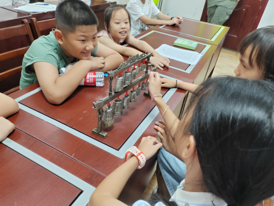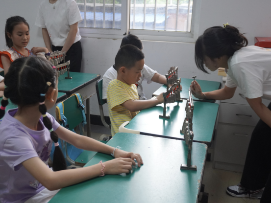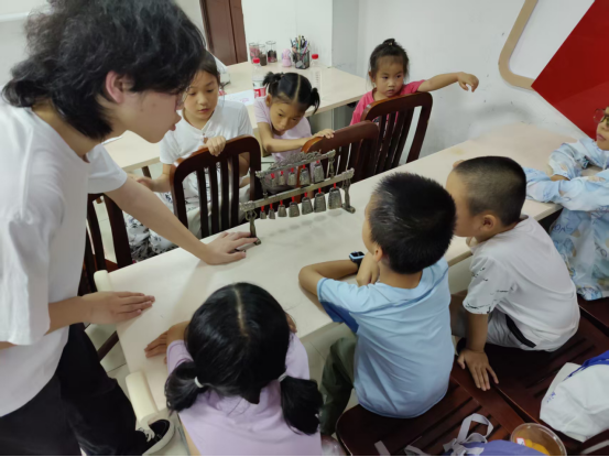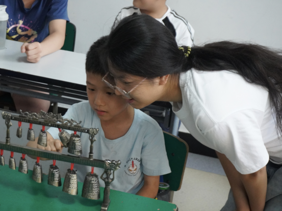 7月7日。队员们带着沉甸甸的教具与满腔热情出发,准时抵达各社区“爱心托管班”后,队员们迅速进入状态,一场别开生面的编钟非遗课就此拉开序幕。