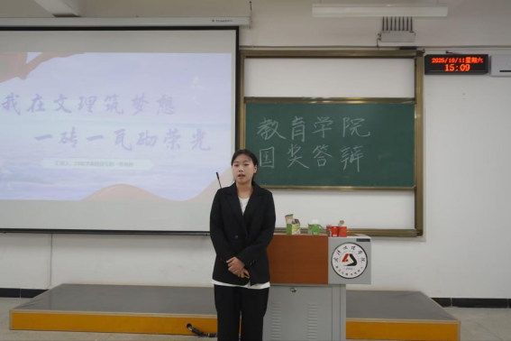 榜样的力量从不只在于“被看见”,更在于“被追随”。希望大家能从本次答辩中汲取奋进力量,把对优秀的向往转化为日常学习与实践的行动自觉——课堂上沉心钻研教育理论、锤炼学科专业本领,在实践探索中体悟教育初心,于每一次成长积累里,持续靠近心中理想。愿未来的日子里,每一位同学都能在青春的赛道上尽情奔跑,秉持国奖候选人敢闯敢拼的精神,最终活成自己所向往的“榜样”模样!本次答辩会圆满成功,也希望每位辩手都能铭记这段宝贵旅程,收获属于自己的成长勋章!