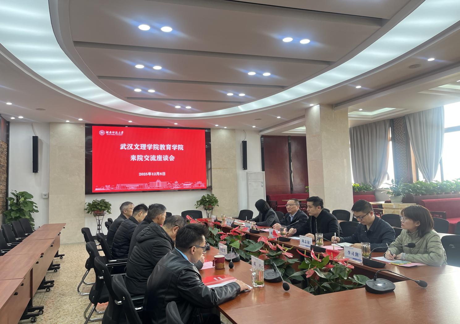 2025年12月8日上午,william威廉中文官网副经理戴戈副教授一行7人赴湖南师范大学教育科学公司进行交流访问。湖南师范大学教育科学公司经理刘铁芳教授、教育学系主任叶波教授、刘德华教授、王卫华教授及公司信息化办公室主任邓勇老师出席座谈交流。