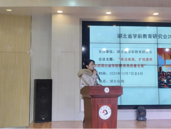 汪琪老师的报告题目为“湖北省学前教育研究会2023年学术年会”,汇报内容主要围绕何为“安吉游戏”?何为“利津游戏”?两种游戏有何异同?以及何为“深度学习”?何为游戏中“深度学习”?展开。汪老师结合自身教学经历对这两个概念进行了详细阐述并运用大量图片直观地对大家进行了讲解。