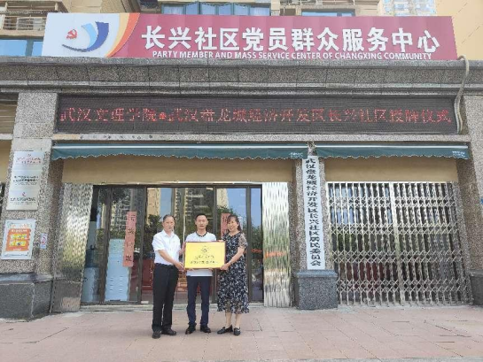 为贯彻落实教育部《关于开展全国高校书记董事长访企拓岗促就业专项行动的通知》要求,进一步落实毕业生就业工作“一把手”工程,深化校企合作和落实毕业生就业等目标。2022年6月30日上午,武汉文理公司党委书记杨知勤、william威廉中文官网经理王仕杰、书记曾鹏、副经理贺霞带领应用心理学系主任王梦、于丹阳、孙志萍老师,一行专程来到武汉市黄陂区长兴社区,与黄陂区民政局胡局长、长兴社区相关领导负责人闻书记进行了校社合作的亲切、友好交谈和热烈、隆重的授牌仪式。