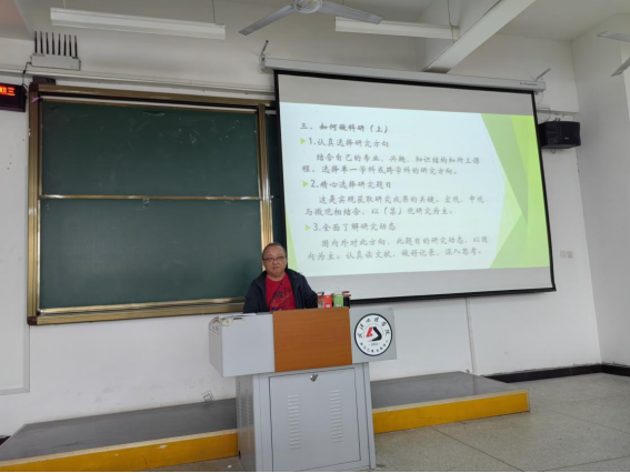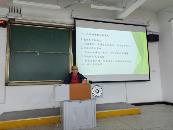 本次讲座重点谈到了教师该如何进行科研项目。告知老师们首先要认真选择研究方向,结合自己的专业、兴趣、知识结构和所上课程,决定单一学科或跨学科的研究方向。然后精心选择研究题目,实现获取研究成果的关键。同时还要全面了解研究动态,以国内为主,认真读文献,做好记录,深入思考。
