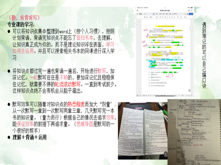 王怡乐同学从确定目标、英语学习、专业课学习三个关键方面展开分享,为同学们提供多元视角与实用策略。确定目标时,她提出要广泛收集信息,确定心仪专业与至少三个目标院校,并深入了解其招生人数、考试内容及报考难度,然后结合自身情况综合分析,确保目标设定既具挑战性又具可行性。英语学习方法上,单词学习推荐车轮法,借助单词书与APP双管齐下,同时注重结合语境背诵理解单词,为翻译与作文写作夯实基础;语法学习则巧用思维导图梳理考点,通过大量练习题巩固知识,且强调多轮网课学习与知识点记忆的重要性,确保语法知识的深度理解与熟练掌握。专业课学习方面,依据公司提供的大纲精准选购书籍资料,运用思维导图构建知识体系,采用车轮法、默写与背诵交替进行的方式强化记忆效果,最后通过多刷真题总结答题要点,掌握应试技巧,提升答题准确率与速度。