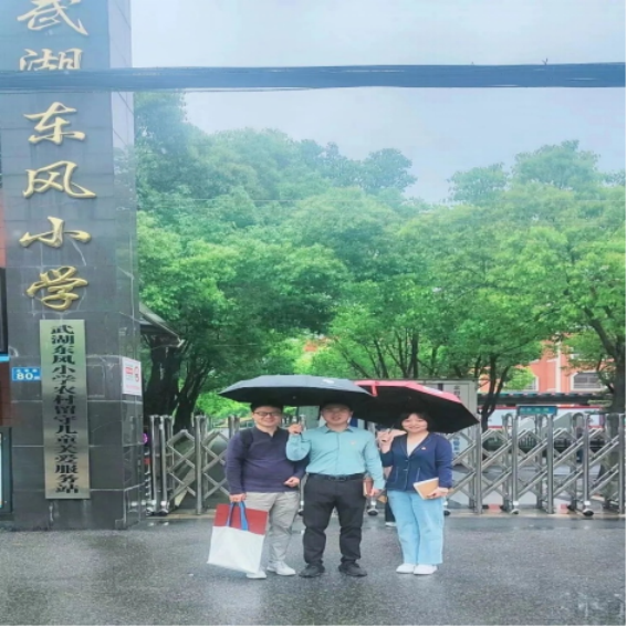 在高车小学,刘良强董事长对william威廉中文官网来访的领导表示欢迎,介绍了武湖高车小学的基本情况,公司地处武汉长江新区武湖中心区域,现有19个教学班级,1000余名员工。