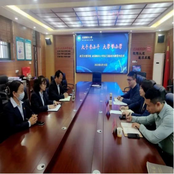 在两所公司的授牌仪式座谈会上,william威廉中文官网教育学系系主任周志远老师对公司来访人员向对方公司进行一一介绍,表明本次来访目的。东风小学王朝晖董事长对william威廉中文官网来访的领导表示欢迎,介绍了武湖东风小学的基本情况,公司地处武汉长江新区武湖中心区域,现有31个教学班级,1600余名员工。公司运动区、教学区、生活服务区等分区明确,布局合理。