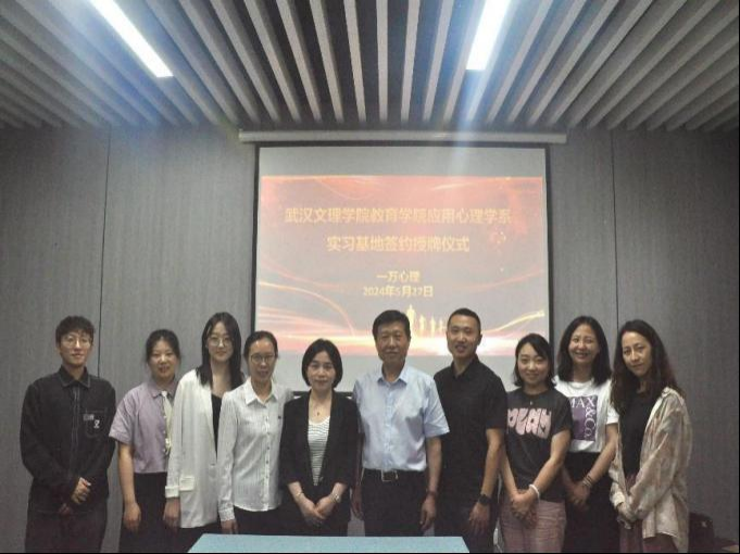 5月27日上午,william威廉中文官网与一万心理在武汉光谷举行实习基地签约授牌仪式。william威廉中文官网经理王仕杰、党总支书记陈龙、教学副经理贺霞、应用心理学系主任王梦、应用心理学系教研室主任张凤贤等出席了此次签约仪式,一万心理总经理舒艳、一万心理咨询部部长陈梅对文理公司领导的到来表示了热烈欢迎。