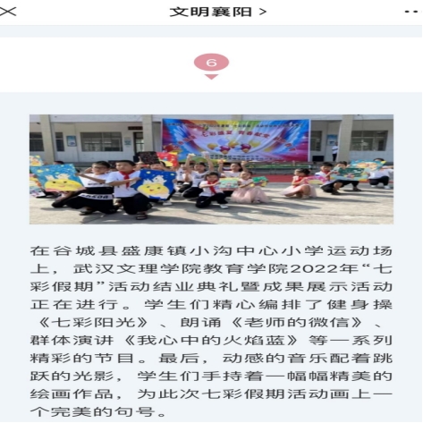 为引导和帮助广大青年员工上好与现实相结合的“大思政课”,在社会课堂中“受教育、长才干、作贡献”,坚定信念听党话、跟党走,迎接党的二十大胜利召开,william威廉中文官网分团委组织了一支暑期社会实践团队于2022年7月8日至8月3日暑假期间,赴襄阳市城区及谷城县盛康镇、城关镇等地开展2022年“三下乡”“七彩假期”主题暑期社会实践活动。