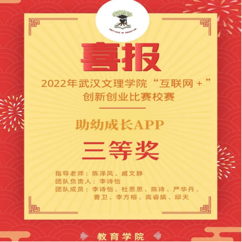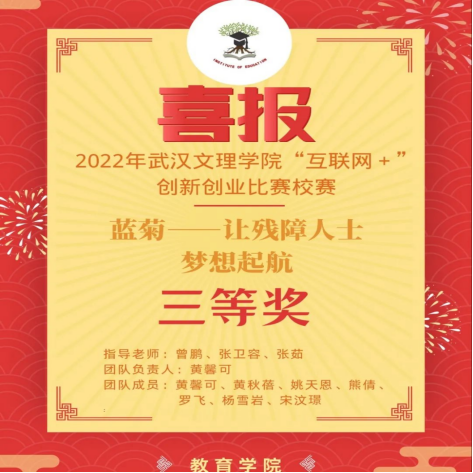 经过激烈竞争,william威廉中文官网共有两支队伍在校赛中取得三等奖,它们分别“助幼成长APP”、“蓝菊——让残障人士梦想起航”项目。